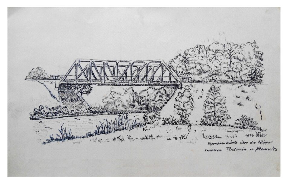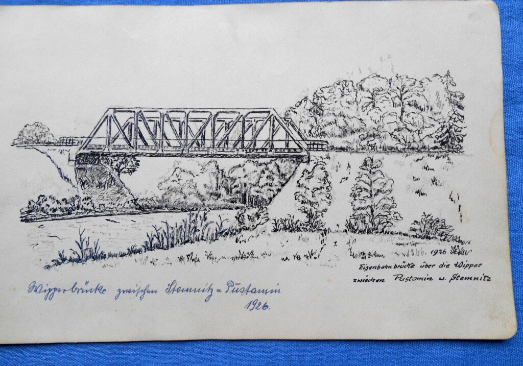 Eisenbahnbrücke · most kolejowy · nad Wieprzą · Postomino · Pustamin · rysunek · Staniewice · Stemnitz · Wieprza · WipperKategorie wpisu: